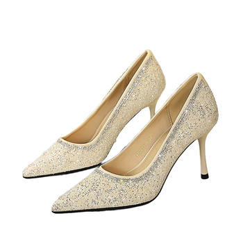 9283-1 BIGTREE รองเท้าแฟชั่นส้นสูงสำหรับผู้หญิง,รองเท้าปลายแหลมประดับมุกสไตล์ยุโรปและอเมริกาแบบตื้นสำหรับผู้หญิง